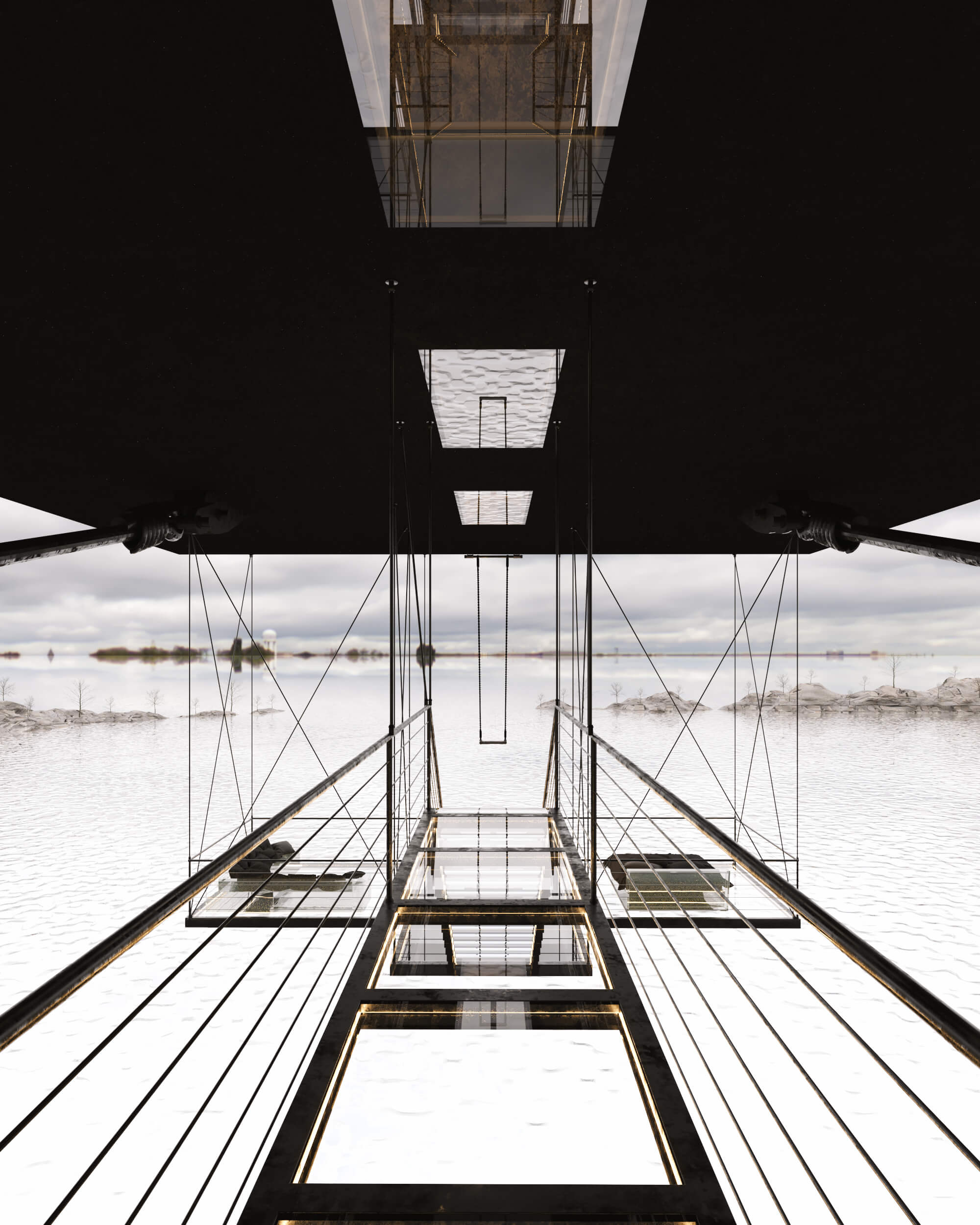 最大胆的设计就是使木屋悬浮在空中,住在这个木屋中能体验到不同的感觉,在室外空间感受到恐惧和兴奋,在室内感受到平静舒适。